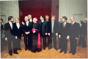 hintere Reihe, v.l.n.r. Diakon Wilhelm Schröder, Regens Dr. Heribert Schmitz, Diakon Siegfried Müller, Diakon Rainer Hellinger, Diakon Karl-Heinz Endemann, Diakon Reinhard Hörmann, Diakon Erwin Winkler, Diakon Johannes Wienold, Diakon Hans-Joachim Neumann, Diakon Norbert van der Krone, Diakon Klaus Neumüller, Diakon Theodor Matuschek, Diakon Fritz Bucher, Diakon Franz Brüggenthies, Diakon Klaus Laschke, Diakon Claus-Dieter Klais