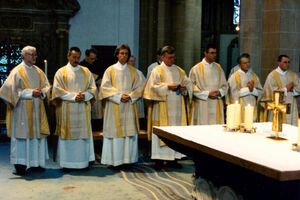 v.l.n.r. Diakon Michael Albrecht, Diakon Paul-Georg Bartscher, Diakon Andreas Blöink, Diakon Wilhelm Goebbels, Diakon Paul Hadley, Diakon Michael Hossfeld, Diakon Josef Hültenschmidt, Diakon Jürgen Lengeling, Diakon Gottfried Rempe, Diakon Karl-Peter Stelzer, Diakon Jürgen Vogt, Diakon Eckhard Witt, Diakon Matthias Weißner, Diakon Raimund Thätner, Diakon Peter Schulte-Pelkum, Diakon Ludwig Ramsel, Diakon Rudolf Kretzer, Diakon Thomas Huneke, Diakon Christoph Henrichs, Diakon Wilhelm Grothe, Diakon Theo Breul, Diakon Hans Joachim Bexkens, Diakon Horst Arwers