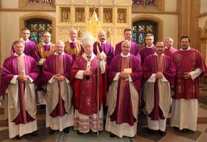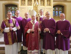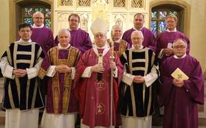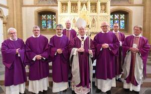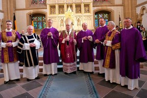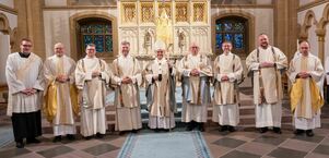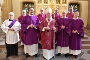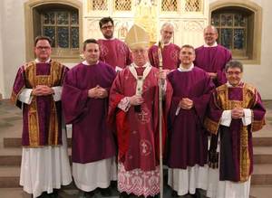 v.l.n.r.: Diakon Stefan Nagels, Pastor Andreas Kreutzmann, Diakon Klaus Eifler, Diakon David Kölsch, Erzbischof Dr. Udo Markus Bentz, Diakon Andreas Köhler, Diakon Stefan Enste, Diakon Jens Malkemper, Spiritual Werner Beule
