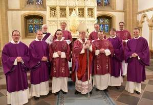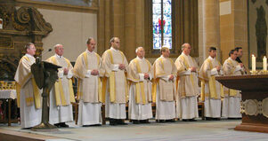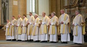 V.l.n.r.: Diakon Dr. Krzysztof Mainka, Diakon Reinhard Sandbothe, Diakon Klaus Rosenkranz, Diakon Stefan Saalmann, Pastor Werner Beule, Diakon Björn Kölber, Erzbischof Hans-Josef Becker, Diakon Matthias Bauer, Diakon Christian Majer-Leonhard, Generalvikar Alfons Hardt, Diakon Christoph Krutmann, Diakon Thomas Huneke, Pastor Andreas Kreutzmann