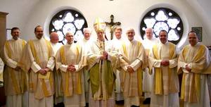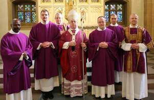 Diakonenweihe am 06.03.2010 V.l.n.r.: Diakon Dr. Christopher Tyrone McDonald, Diakon André Quante-Blankenagel, Diakon Thomas Zabel, Erzbischof Hans-Josef Becker, Diakon Wilfried Heß, Diakon Gerhard Möller, Diakon Olaf Scheideler