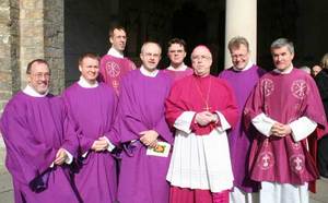 Diakonweihe am 10.03.2007 v.l.n.r.: Diakon Wolfgang Andratschke, Diakon Andreas Hintermüller, Diakon Lothar Dzialdowski, Diakon Wolfgang Frohwein, Diakon Michael Sedelies, Erzbischof Hans-Josef Becker, Diakon Josef Wefringhaus, Diakon Andreas Harmata