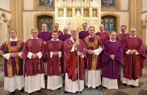 Diakonweihe am 14.03.2015 V.l.n.r.: Diakon Oliver Soddemann, Diakon Marek Okpisz, Diakon Joachim Langer, Erzbischof Hans-Josef Becker, Diakon Werner Kinold, Diakon Norbert Pieofke, Diakon Klaus Lipka, Diakon Joachim Werth.