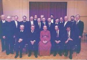 hintere Reihe, v.l.n.r. Diakon Wilhelm Schröder, Regens Dr. Heribert Schmitz, Diakon Siegfried Müller, Diakon Rainer Hellinger, Diakon Karl-Heinz Endemann, Diakon Reinhard Hörmann, Diakon Erwin Winkler, Diakon Johannes Wienold, Diakon Hans-Joachim Neumann, Diakon Norbert van der Krone, Diakon Klaus Neumüller, Diakon Theodor Matuschek, Diakon Fritz Bucher, Diakon Franz Brüggenthies, Diakon Klaus Laschke, Diakon Claus-Dieter Klais