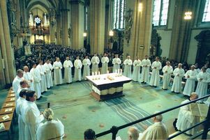 v.l.n.r. Diakon Michael Albrecht, Diakon Paul-Georg Bartscher, Diakon Andreas Blöink, Diakon Wilhelm Goebbels, Diakon Paul Hadley, Diakon Michael Hossfeld, Diakon Josef Hültenschmidt, Diakon Jürgen Lengeling, Diakon Gottfried Rempe, Diakon Karl-Peter Stelzer, Diakon Jürgen Vogt, Diakon Eckhard Witt, Diakon Matthias Weißner, Diakon Raimund Thätner, Diakon Peter Schulte-Pelkum, Diakon Ludwig Ramsel, Diakon Rudolf Kretzer, Diakon Thomas Huneke, Diakon Christoph Henrichs, Diakon Wilhelm Grothe, Diakon Theo Breul, Diakon Hans Joachim Bexkens, Diakon Horst Arwers
