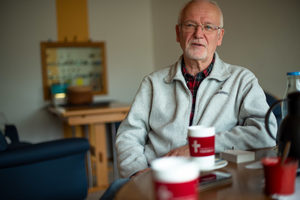 Meine Frau und ich sind inspiriert durch unsere Freunde einem Familienkreis der Fokularbewegung beigetreten. Das war ein Neuanfang. Einmal saßen wir mit dem Familienkreis bei uns Zuhause und ich sagte: „Wenn ich Pfarrer Hellmann das nächste Mal sehe, dann mache ich mit ihm einen Termin für ein Gespräch über den Glauben – aber jetzt muss ich erstmal Milch vom Bauern holen.“ Ich gehe aus der Tür raus und (haut auf den Tisch) treffe Pastor Hellmann. Dann habe ich mit ihm einen Gesprächstermin vereinbart.